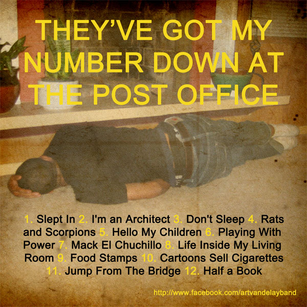 Ricky Pharoe gets up on the weird side of the bed for this one. Re-monikered as Art Vandelay, They’ve Got My Number Down at the Post Office finds the MC and producer Mark Formway making antithetical rap music in the grand/odd tradition of their anti-establishmentarianist (is that a word?) brethren Black Lab Productions.